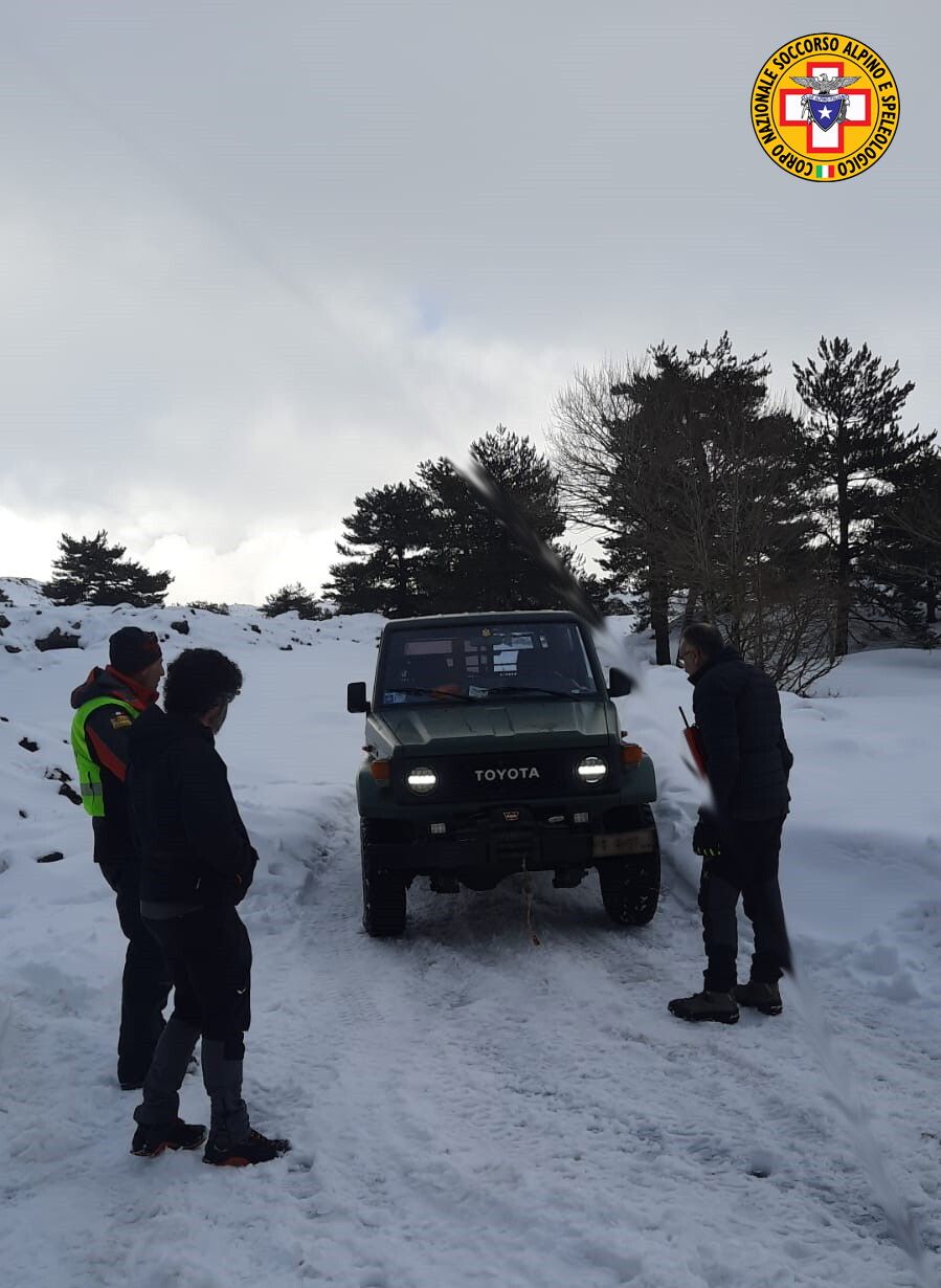 In Sicilia una coppia, con un bimbo di cinque mesi, è stata tratta in salvo dopo che, a causa della neve, era rimasta bloccata sul versante sud dell'Etna. In soccorso della famiglia sono intervenuti i tecnici del Soccorso alpino e speleologico siciliano, allertati da una guida vulcanologica. I due, lui toscano e lei siciliana, insieme al figlio neonato si erano avventurati a bordo della loro autovettura lungo la strada che, dal rifugio Ariel, conduce verso Contrada Milia, in territorio del comune di Ragalna (Catania). Probabilmente sono stati tratti in inganno dal navigatore.