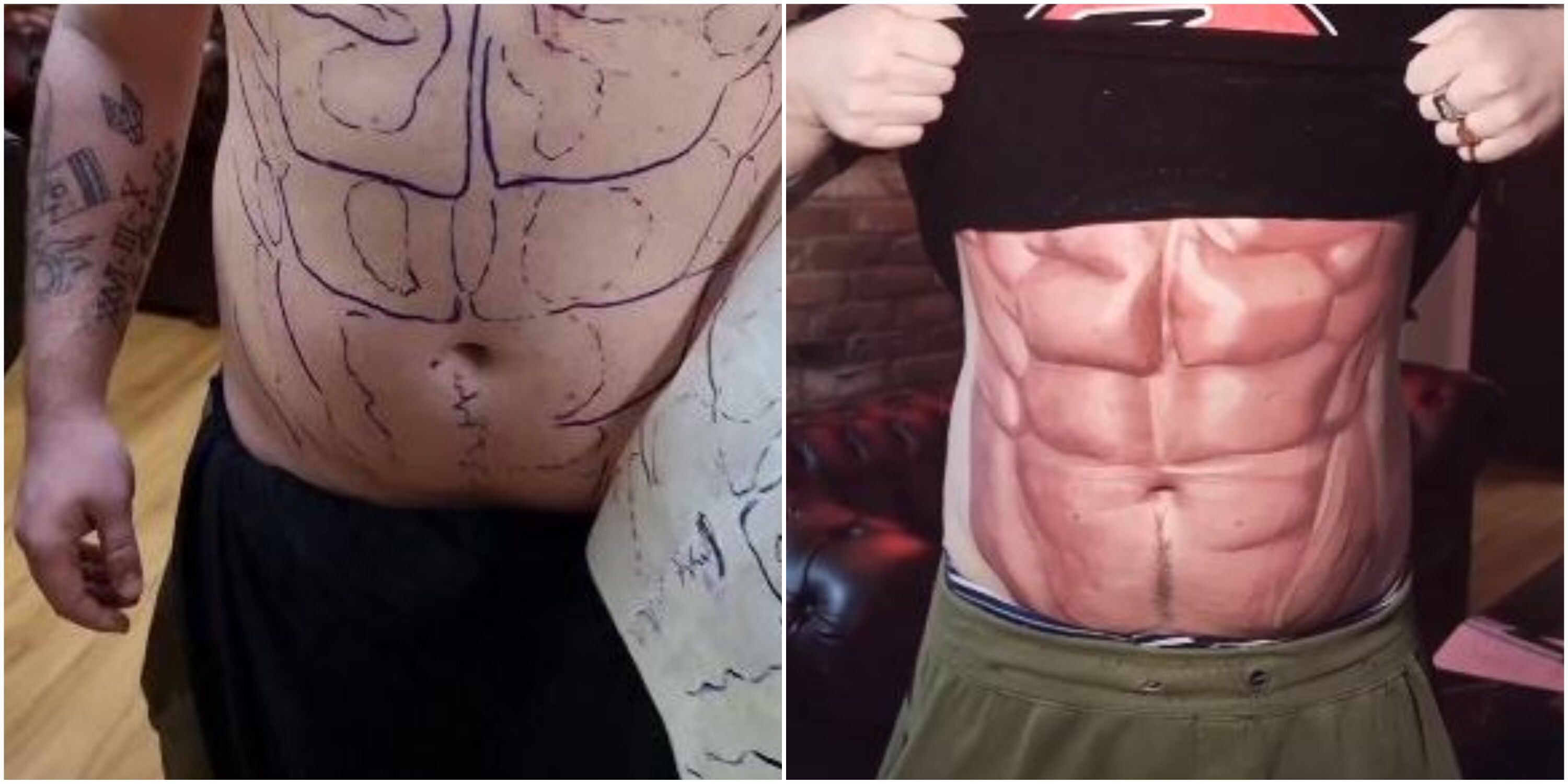 Voleva ottenere addominali scolpiti in pochi giorni senza fare alcuna dieta o andare in palestra, col semplice obiettivo di essere in forma per l'estate. E così in Gran Bretagna un ragazzo, che ha voluto mantenere l'anonimato, si è rivolto a uno dei più importanti tatuatori di Manchester, Dean Gunther, che ha disegnato sulla sua pancia una "tartaruga" perfetta. Per completare il tatuaggio ci sono voluti due giorni di lavorazione.