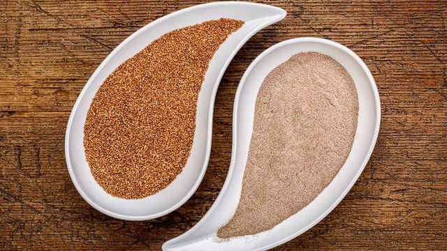 COME SI CONSUMA – La parte edibile è il seme, che può essere consumato al naturale, oppure cotto o macinato e trasformato in farina. Il teff può essere di diverse varietà e avere una colorazione più o meno scura che varia dal giallo chiaro (il cosiddetto teff bianco, il più delicato e pregiato) al marrone-rossiccio, dal gusto più intenso che richiama il sapore della nocciola e anche del cioccolato. I semi interi, cotti per circa 15 minuti in abbondante acqua e con l’aggiunta di un pizzico di sale, si trasformano in una specie di porridge dal sapore che ricorda quello delle nocciole e può essere consumato da solo o con l’aggiunta di frutta fresca, miele o sciroppo d’acero. La farina può essere utilizzata per produrre pane e per sostituire parte della farina di frumento nella preparazione di biscotti e torte.
