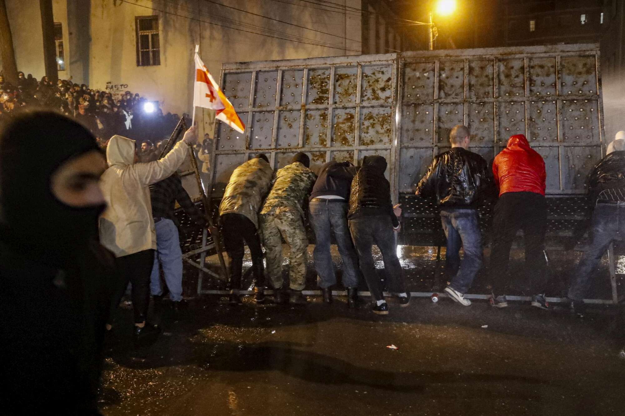 Le immagini della Tv georgiana hanno mostrato centinaia di poliziotti antisommossa nelle strade, con elmetti e scudi in mano. Almeno un'auto della polizia è stata capovolta. Nubi di gas lacrimogeni si sono alzate sopra le strade intorno al palazzo del Parlamento mentre la polizia cercava di sedare le proteste. Sarebbero decine di migliaia le persone che si sono unite al secondo giorno di proteste.