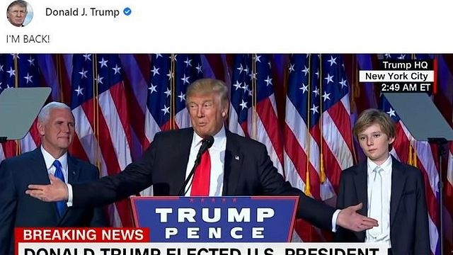 "I'm back" ("sono tornato"). Così Donald Trump posta su Facebook per la prima volta dal 2021, da quando era stato cacciato dopo l'assalto a Capitol Hill del 6 gennaio. Il post include un breve filmato della notte dell'elezione del 2016 in Trump dice: "Scusatemi per avervi fatto attendere. Questioni complicate. Complicate".
