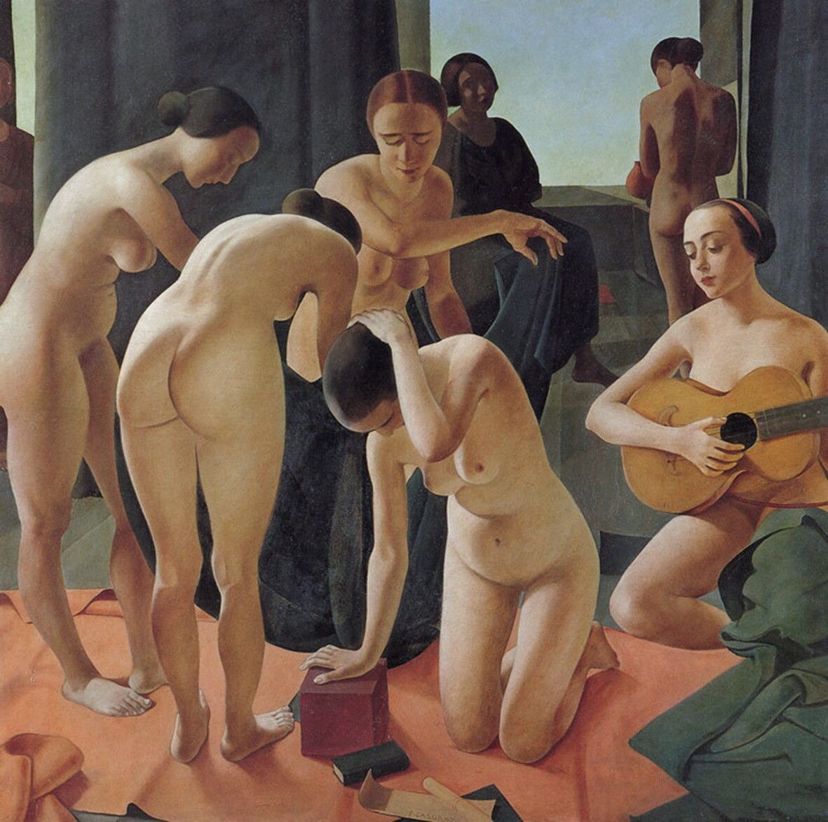 Il miraggio della classicità, che esplode al principio degli anni Venti, è ben rappresentato da Le due sorelle, Fanciulla col linoleum, Maschere, tutti del 1921. La loro atmosfera sospesa e silenziosa, permeata di misura e ordine, di malinconia e mistero, oltre a documentare un ritorno alla modella, denuncia un aperto confronto con l’antico. Nel celeberrimo dipinto Silvana Cenni (1922) tutto è aderente al vero, fin nei più minuti dettagli, ma talmente realistico da tradursi in straniamento. Si potrebbe descrivere con le parole che Casorati aveva riservato a Torino, la città in cui aveva deciso di vivere: "Geometrica e misurata come un teorema, enigmatica e inquietante come una cabala, astratta come una scacchiera". Il riferimento a Piero della Francesca è nell'armonia della composizione, nell’eco di quella silente immobilità che permea ogni cosa e congela la scena in un fermo immagine carico di attesa. Anche nella Conversazione platonica (1925), un dipinto dove in realtà nessuno parla e il tempo è sospeso. La donna dorme di un sonno perfetto, estranea al misterioso uomo che le siede accanto, chiusa in una luce immobile e ogni dettaglio è regolato secondo peso e misura. La verità, sembra suggerire Casorati, non è più nella vita, ma nel tempo immobile dell’arte.