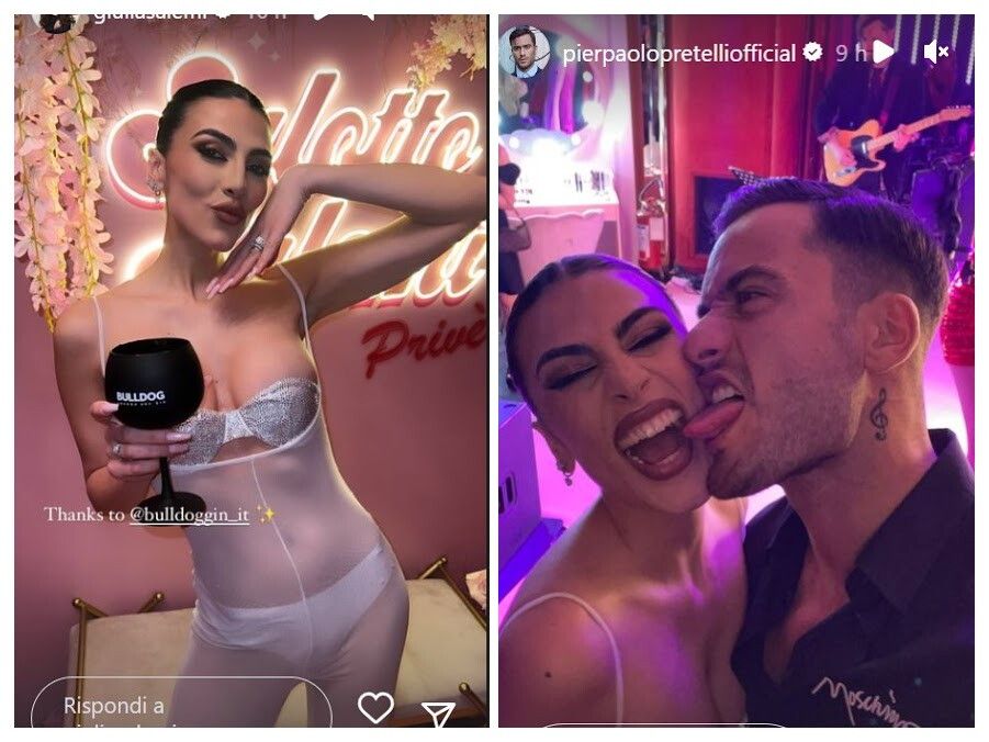 Giulia Salemi ha aspettato la mezzanotte per spegnere le candeline ma il suo party supersexy pieno di vip è andato in onda venerdì sera. “Salotto Salemi” il mood della festa che l’ha vista protagonista di canti, balli e pose audaci per una bellissima Giulia coperta appena da un reggiseno argentato e una mise trasparente. Con lei il fidanzato Pierpaolo Pretelli e tanti amici pronti ad alzare i calici.