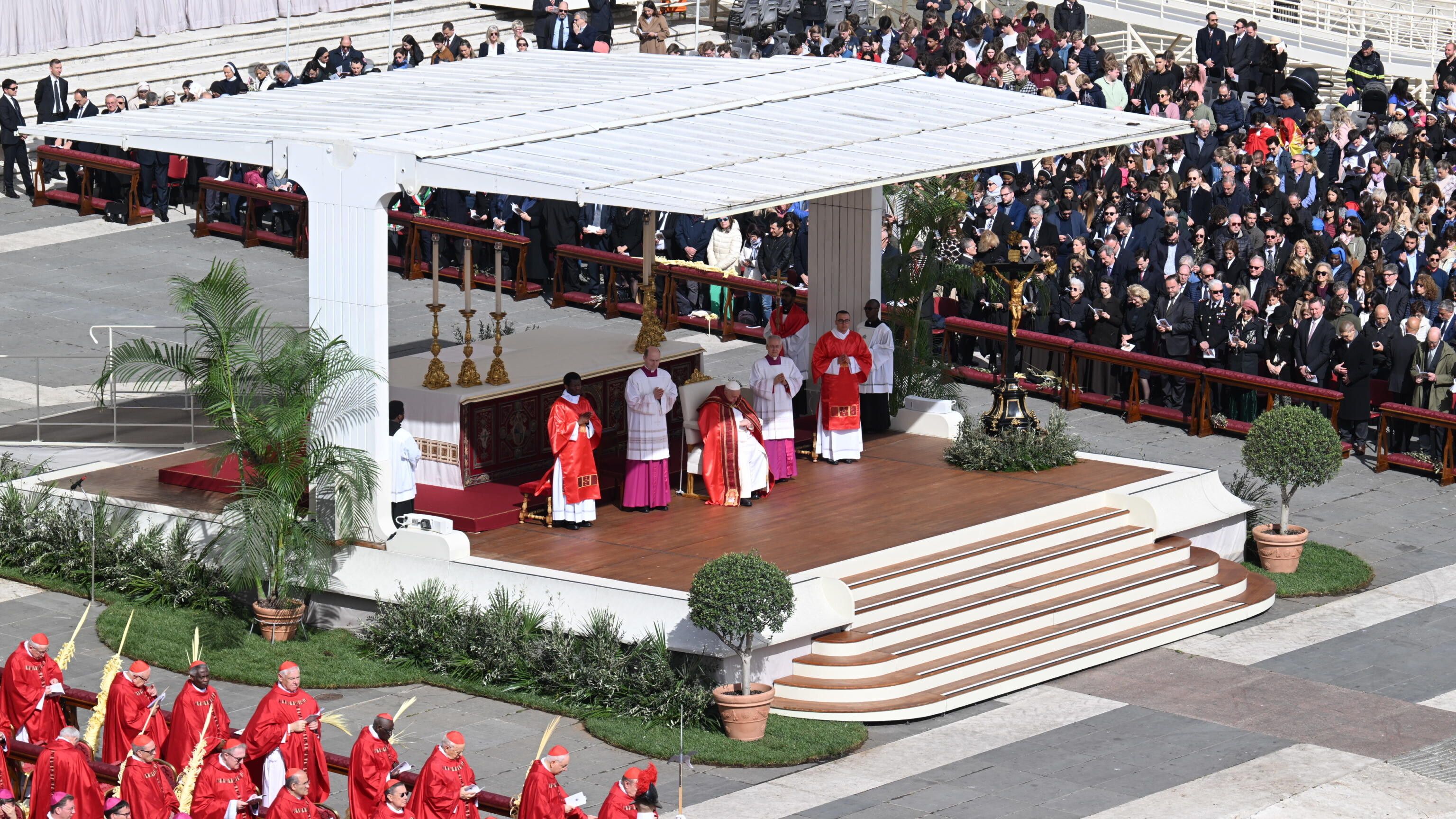 Voce flebile - Il Papa ha aperto la celebrazione della Domenica delle Palme con la voce debole e lievemente affannata. Ha indossato i paramenti liturgici e ha raggiunto la sua sedia a piedi con l'aiuto del bastone, con passo lento, senza sedia a rotelle.
