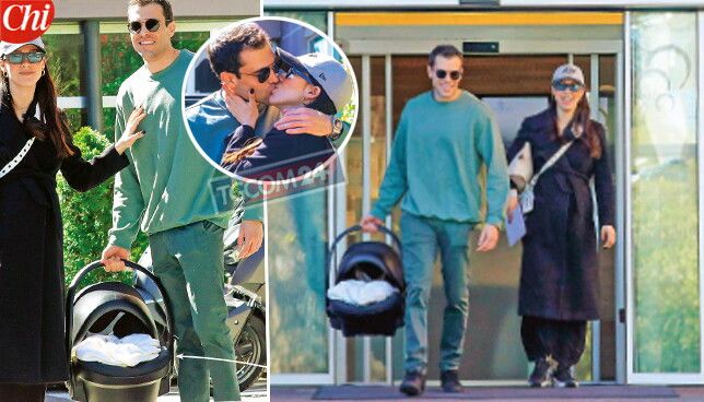 Aurora Ramazzotti, 26 anni, e Goffredo Cerza, 27, escono dalla clinica svizzera Sant’Anna di Sorengo mano nella mano per la prima volta da mamma e papà. Lui tiene anche la culla del neonato, Cesare Augusto, nato lo scorso 30 marzo, e sorride con orgoglio ai flash prima di dare un bacio appassionato alla compagna. A scortarli ci sono Michelle Hunziker, nonna Ineke, l’amico Tommaso Zorzi (il neo-zio ha compiuto 28 anni il 2 aprile e ha festeggiato con un party di compleanno da vip) e i genitori di Goffredo, Francesca Romana Malato e Fabio Cerza.