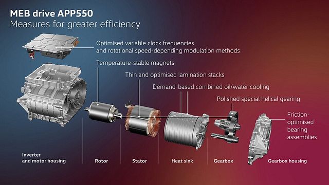 La base progettuale del nuovo propulsore è sempre la matrice modulare di trazione elettrica MEB: ha una potenza di 210 kW (286 CV), una coppia massima di circa 550 Nm e sarà prodotto nello stabilimento Volkswagen Group Components di Kassel.
