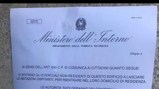 "Negli ultimi giorni sono state molte le segnalazioni giunte da tutta Italia alla Polizia circa un volantino, affisso sulle facciate di alcune abitazioni e condomini sul quale si intima ai cittadini di far rientro presso i luoghi di usale residenza. - si legge sul sito della Polizia - E' evidentemente una truffa da non assecondare". Il documento "non è riconducibile ad alcuna autorità istituzionale" prosegue il Dipartimento, ed è un "probabile tentativo di alcuni malviventi di introdursi indisturbati nelle abitazioni".