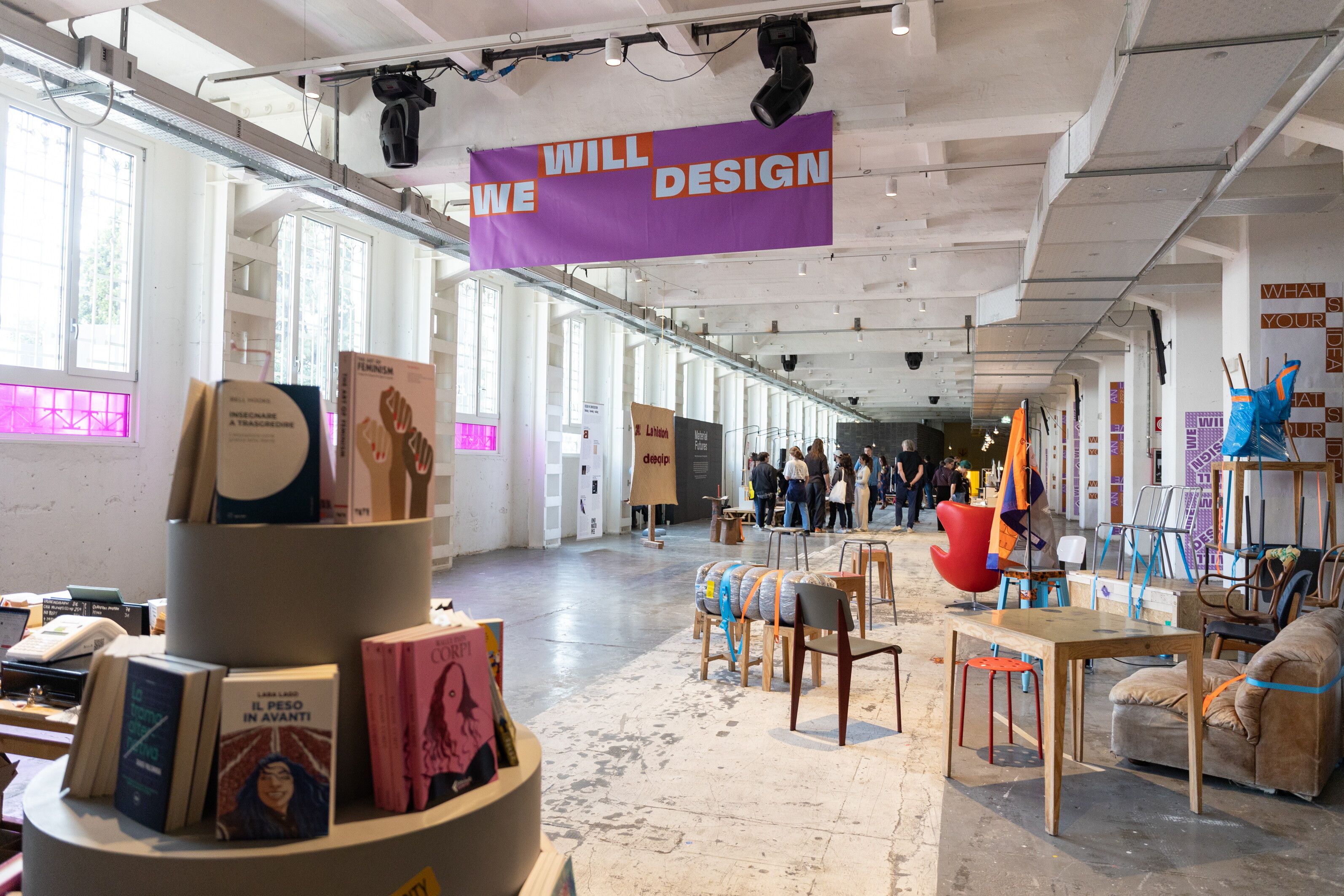 Per la Design Week 2023 We Will Design sviluppa queste riflessioni presentando una grande installazione di Claire Fontaine che accoglie il pubblico nella Ground Hall di BASE, i formati progettuali Temporary Home ed Exhibit (con progetti da tutto il mondo), We Will Design – Kids (con una serie di momenti a misura di bambino sempre collegati a valori di accessibilità e inclusione), We Will Design Music (con un ricco palinsesto musicale in collaborazione con Volvo Studio Milano e Le Cannibale).