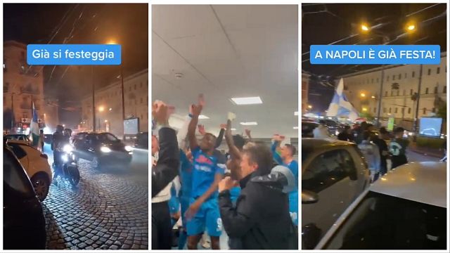 A Napoli, dopo la vittoria per 1 a 0 sulla Juventus, è già festa scudetto. I tre punti conquistati a Torino avvicinano gli azzurri alla conquista del Tricolore e per questo i tifosi sono scesi in strada a celebrare la vittoria che avvicina al sogno. Cortei in diverse zone della città: in piazza Carlo III e