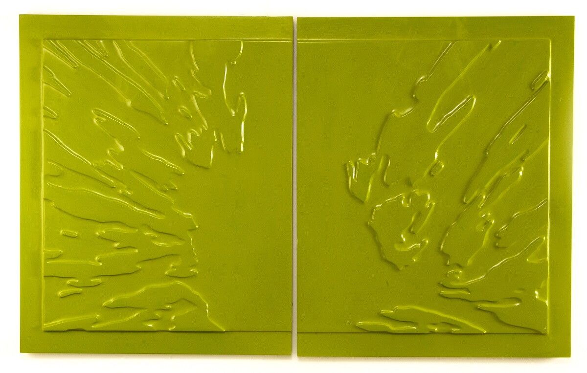 La mappa archetipa di quest’avventura tra terra e cielo, Sergio Floriani l’ha rintracciata proprio nei microsolchi che il genere umano ha sulla punta delle dita fin dalla nascita, nelle impronte digitali: topografie uniche e irripetibili, le cui linee diventano per lui rilievi di piombo o di stagno, traiettorie attraverso le quali esplorare le possibilità dell’arte. Il suo è un percorso che comprende il segno, la forma e lo spazio, ma non dimentica il dialogo continuo con la materia, che gli fa perlustrare le possibilità della pittura e della scultura (due elementi che nelle opere di Floriani convivono sempre) e spazia dall’acciaio corten allo stagno, dalla catramina su carta giapponese alla sabbia su piombo, mentre il colore a volte si accende nelle tonalità più vivaci, quasi pop, e altre, per esempio quando racconta i malinconici contorni del lago è capace di raccogliersi in tenui e silenziose gradazioni (Paesaggio lacustre, 1982).