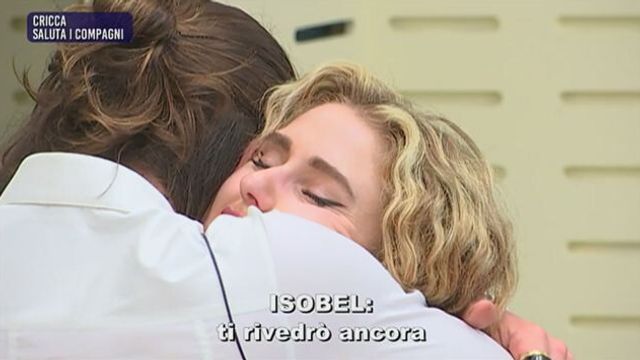 In sala relax Isobel lo abbraccia e lo consola, promettendogli che si vedranno una volta terminato il programma: "Ti rivedrò ancora, è una promessa". Cricca però non ce la fa a dirle addio e scappa a piangere in camera, confidando ai compagni: "E' amore ragazzi e l'amore prende la pancia". Anche la ballerina è in crisi profonda e piange disperata contro il muro. In suo soccorso arriva proprio la "rivale" Maddalena. Nonostante siano spesso in sfida una contro l'altra, le ragazze sono molto amiche e l'allieva di Emanuel Lo si precipita ad abbracciarla e asciugarle le lacrime.