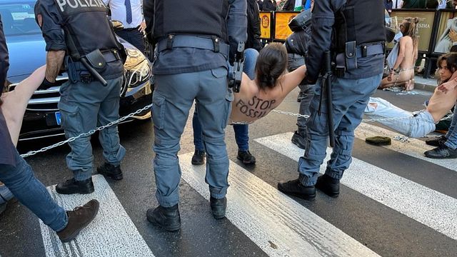 Sei attivisti per il clima di Ultima Generazione hanno compiuto un nuovo blitz a Roma, incatenandosi seminudi in strada e bloccando via del Tritone poco prima dell'incrocio con piazza Barberini. Legati insieme, con le scritte "stop fossile" dipinte sul corpo, i sei si sono inginocchiati per terra e hanno svolto uno striscione, impedendo per diversi minuti il passaggio del traffico. Alla fine i sei sono stati trascinati via di peso dalla polizia.