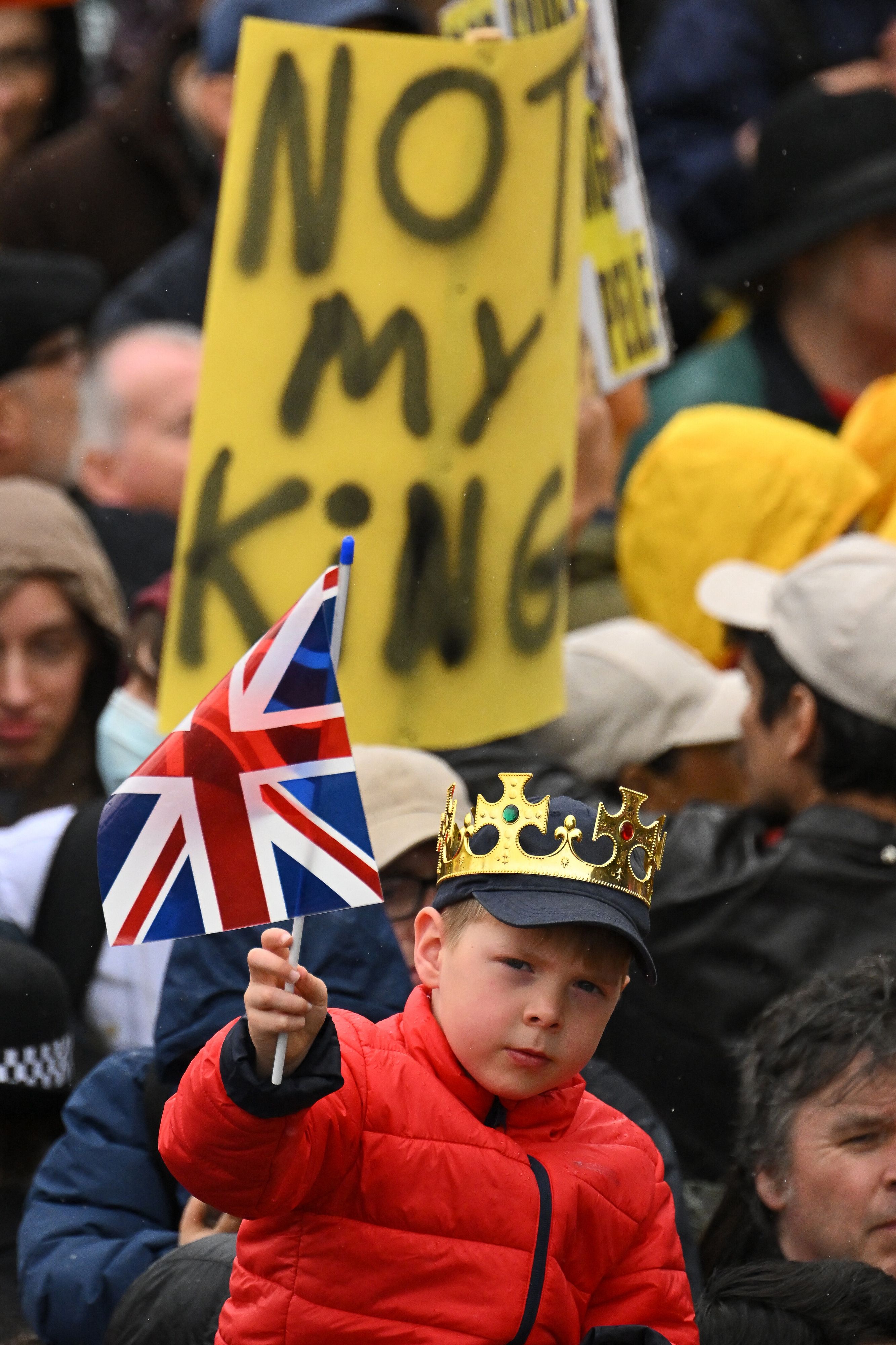 Durante l'incoronazione di re Carlo III e della moglie Camilla all'abbazia di Westminster, alcune centinaia di manifestanti anti-monarchia si sono radunati a Trafalgar Square a Londra dove la cerimonia è stata trasmessa con altoparlanti. La Bbc riferisce che ogni volta che venivano pronunciate le parole "re Carlo" i manifestanti gridavano "Not my king", cioè "Non il mio re". In altri momenti della funzione religiosa, i dimostranti hanno fischiato e gridato "È solo un uomo normale". Inoltre, dopo l'unzione, quando sono state pronunciate le parole "God save the King", i dimostranti anti-monarchia hanno fischiato e iniziato a cantare "Not my king".