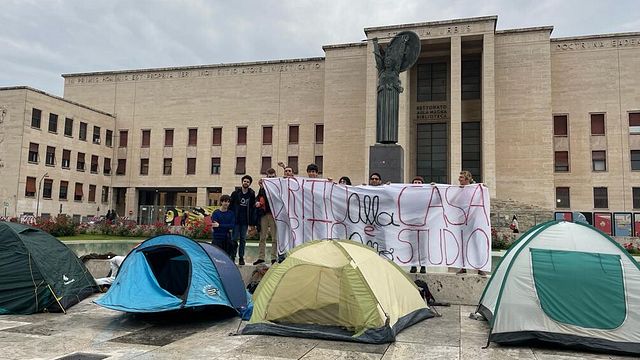 Nelle grandi città affitti troppo cari per i fuori sede - Particolarmente determinato il gruppetto che, come detto, da alcune ore sta occupando gli spazi aperti de “La Sapienza”. Come segnalano le associazioni studentesche, anche a Roma cercare casa oggi è diventata un'impresa: gli appartamenti disponibili costano in media 500€ e gli studenti fuori sede sono 40 mila (un terzo di tutta la popolazione dell'Ateneo). Inoltre, sempre secondo i rappresentanti degli studenti, gli strumenti che la regione mette a disposizione tramite contributi per alloggi e borse di studio rimangono delle soluzioni temporanee ed esigue. E i soldi investiti per le residenze studentesche sono ancora troppo pochi.