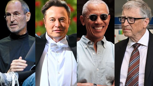 Nella foto, da sinistra: Steve Jobs, Elon Musk, Barack Obama e Bill Gates