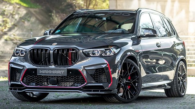 Il preparatore tedesco ha iniziato il suo intervento rivedendo la X5 M nella carrozzeria e intervenendo con un body kit che ne cambia l’aspetto, donandole un carattere più tenace. Manhart ha fatto ampio utilizzo della fibra di carbonio, nel frontale per esempio spicca un nuovo splitter e nuovi inserti per la prese d'aria, mentre al posteriore si notano un nuovo diffusore e un nuovo spoiler. Il profilo esalta le minigonne modificate, oltre a diversi accessori M Performance Parts, come le calotte degli specchietti, anche loro in fibra di carbonio. La vista laterale è poi impreziosita dai cerchi Manhart Classic-Line in finitura Silk Matt Black da 23”, montati su pneumatici della misura 315/25 ZR23.