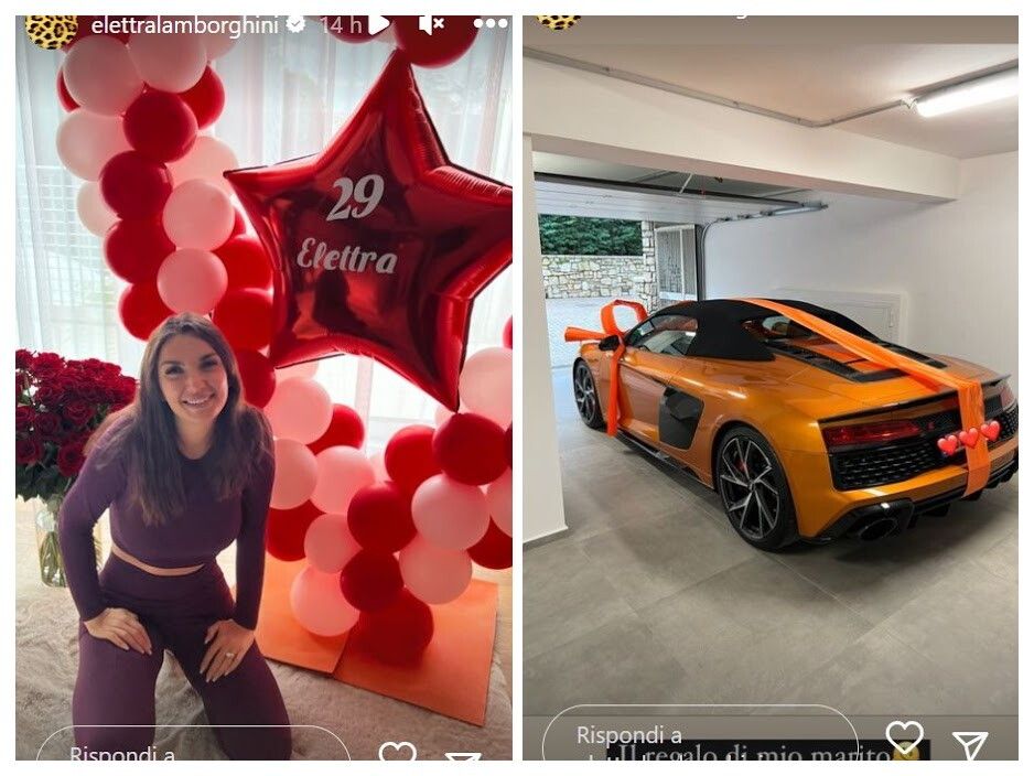 Elettra Lamborghini, nipote del fondatore dell’impero automobilistico italiano, cosa potrebbe desiderare di più per il suo ventinovesimo compleanno se non una vettura? Pare uno scherzo, ma il marito della cantante, il noto dj Afrojack, per festeggiarla le ha fatto trovare un bolide arancione parcheggiato nel garage e infiocchettato come un bel regalino. L’auto sportiva cabrio, manco a dirlo, non è del parco macchine di famiglia ma arricchirà la collezione di Elettra.