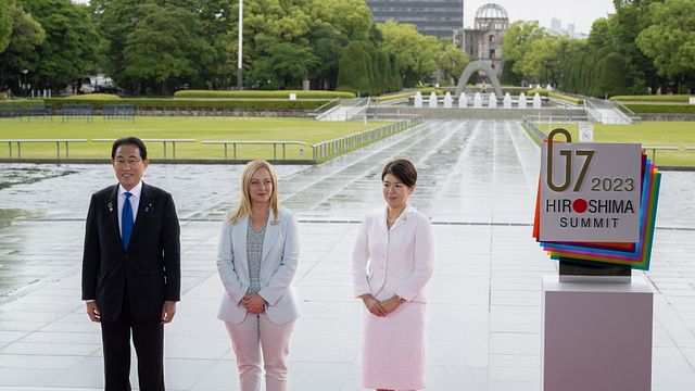 Al G7 di Hiroshima il premier italiano Giorgia Meloni è intervenuto alla prima sessione di lavoro, focalizzata sull'economia globale. "Abbiamo bisogno di una migliore e più efficace collaborazione con il Sud Globale - ha detto -. Occorre quindi lavorare insieme per dare forma a un ordine economico internazionale libero e aperto, concentrarci sull'espansione delle relazioni commerciali rimanendo fermi sui principi di apertura, trasparenza, concorrenza leale (perché nessun mercato può essere libero se non è anche equo) e Stato di diritto".