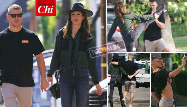 Elisabetta Canalis sorride soddisfatta in direzione dei flash mentre tiene per mano Georgian Cimpeanu a West Hollywood. Con lo sportivo l’abbiamo vista parecchie volte. Anche sui social. Allenamenti intensi e grandi emozioni, ma mai allo scoperto a passeggiare tra sguardi d’intesa e coccole come una vera coppia. Lei indossa jeans e stivali western, lui tshirt e bermuda. Poi per strada lui solleva la maglietta e insieme si scattano un selfie a petto nudo tra risate e abbracci.