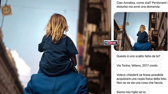 Un messaggio a sorpresa via messenger che provoca un tuffo al cuore e fa comprendere il valore di una passione diventata un lavoro. "Siamo io e mio figlio quelli ritratti nella tua foto scattata in via Torino a Milano nel 2017, vorrei acquistarla". Lì per lì non crede a quanto legge Annalisa Durighello, 28 anni, fotografa professionista freelance da 9, residente ad Asolo (Treviso) e in un flash la macchina del tempo la riporta a quel weekend di marzo di sei anni fa, a Milano, con le amiche, quando iniziava a cimentarsi con la macchina fotografica sperimentando l'arte della street photography. "Non ho indagato molto su questa foto perché non voglio rovinare la magia di questo momento - confessa la fotografa a Tgcom24. - Quanto accaduto sembra una favola, mi ha emozionato e dà valore a quanto faccio. Stamperò quella foto e gliela regalerò".