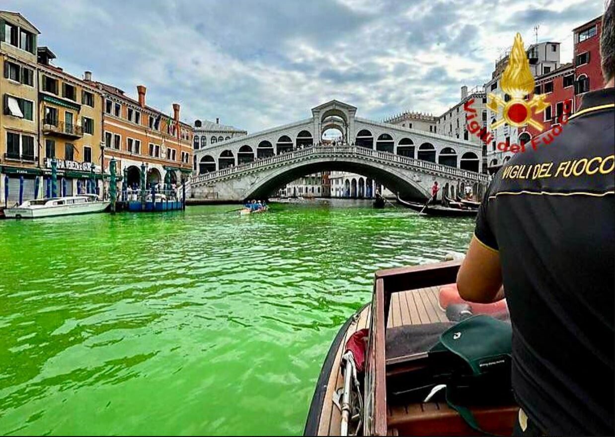 Domenica mattina, sul Canal Grande di Venezia, all'altezza del Ponte di Rialto, è apparsa una chiazza di liquido verde fosforescente. Intorno alle ore 9:30 alcuni cittadini hanno avvisato la polizia locale. Secondo i rilievi, si tratterebbe di un "tracciante", cioè di un liquido che viene immesso in caso di perdita di acqua per seguirne il tragitto. Gli inquirenti avevano ipotizzato fin da subito una protesta da parte di militanti ambientalisti, sebbene in assenza di rivendicazioni. La polizia si era messa alla ricerca dei presunti responsabili, che avrebbero esposto anche uno striscione.