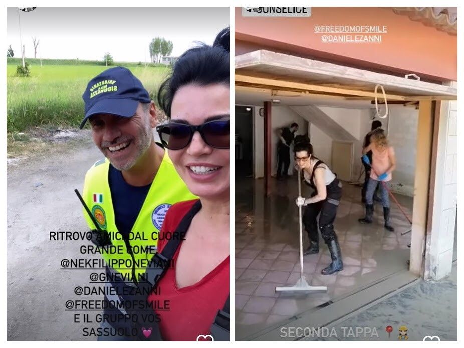 Nek e i compagni del Vos, volontari della sicurezza di Sassuolo, saluta Laura Torrisi prima di iniziare i lavori. Il cantante coordina i volontari e le persone che instancabilmente si mettono a disposizione per dare una mano agli alluvionati dell’Emilia-Romagna. “Ritrovo amici dal cuore grande” scrive la Torrisi postando una storia con Nek.