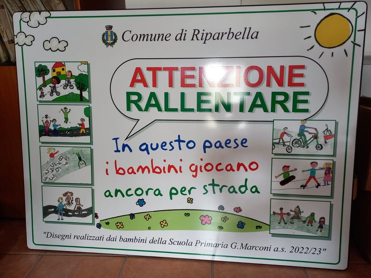 Il progetto dei cartelli stradali con lo slogan "Rallenta, stiamo giocando" è nato a Riparbella (Pisa) da un'esigenza manifestata dai bambini stessi per sensibilizzare gli automobilisti a rallentare e a fare più attenzione del solito quando attraversano il centro abitato.