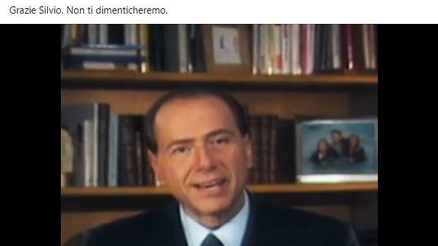 "Combattente, coraggioso, determinato - il testo del messaggio sul video celebrativo che Giorgia Meloni ha dedicato al fondatore di Forza Italia. - Uno dei più grandi imprenditori che l'Italia abbia avuto, capace di innovare e costruire nuove strade".