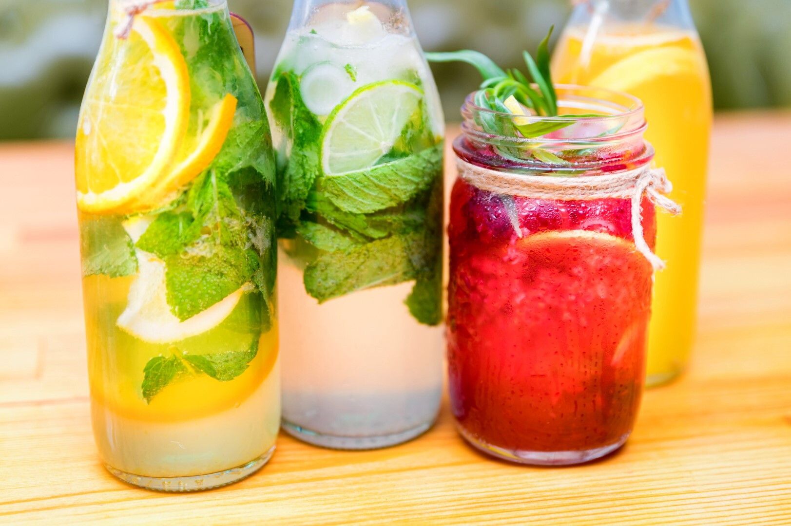 L’ACQUA - È ovviamente la nostra prima alleata. L’ideale è consumarla a temperatura fresca (non ghiacciata), anche leggermente frizzante se amiamo quella minerale. Per essere maggiormente invogliati a bere, possiamo aromatizzarla con qualche goccia di succo di limone (ma senza aggiungere zucchero) o con qualche foglia di menta, che esalta il senso di freschezza. Se cerchiamo un sapore più intenso, possiamo preparare tisane o tè, meglio se deteinato per un riposo più tranquillo, lasciare raffreddare la nostra bevanda e poi consumarla fresca: il buon sapore ci aiuterà a raggiungere la quota di liquidi da assumere quotidianamente. Meglio evitare invece le bevande troppo gassate e zuccherate: dopo un momentaneo sollievo, aumentano la sensazione di sete e ci fanno assumere una quantità di zuccheri della quale il più delle volte non siamo consapevoli. Per quanto riguarda le quantità di acqua da bere, vale sempre la vecchia regola dei due litri circa al giorno, pari a otto bicchieri, adatta a tutti salvo diversa indicazione del medico curante.