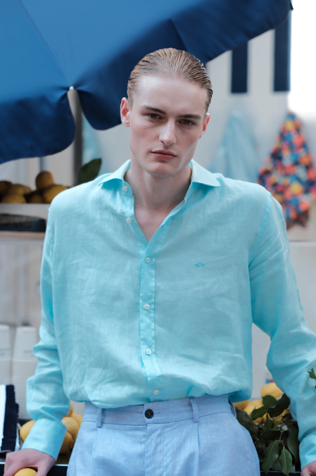 Uno stile lifestyle che rimanda ai tagli sartoriali, puliti, essenziali. Raffinati disegni cravatta, fiorellini e micro geometrie mixati a una palette di colori che spazia dagli azzurri del Mediterraneo alle nuance sorbetto. Un omaggio al sogno della Dolce Vita, ai riti della villeggiatura, alle vacanze sulle coste italiane.