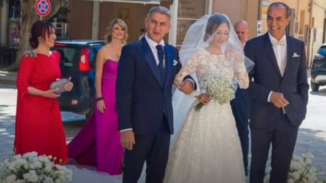 Così a precedere l'entrata della sposa nella basilica Cattedrale di Mazara del Vallo (Trapani) sono state tutte le sorelle in veste di damigelle: Melissa e Sofia (sorella di Melissa), Perla e Lea (sorelle di Caterina).