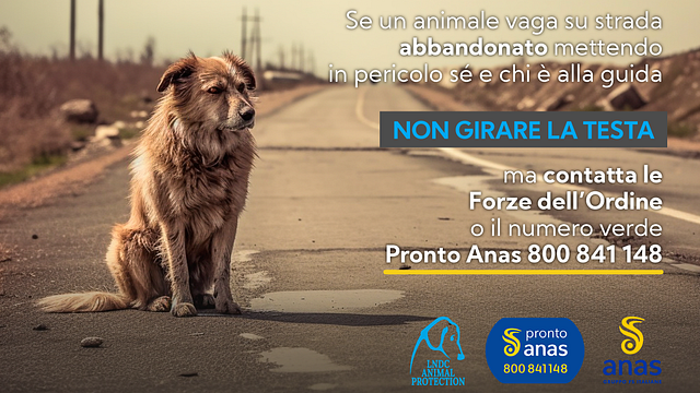 Torna anche quest'anno la campagna di informazione contro l'abbandono degli animali in strada #AMAMIeBASTA promossa da LNDC Animal Protection e Anas (Società del Polo Infrastrutture del Gruppo FS italiane). Solo nel 2022, LNDC ha soccorso più di 38.000 animali e ha garantito assistenza e protezione a più di 51.745 vittime di abbandono e maltrattamento, con il principale obiettivo di trovare a ognuno una famiglia.