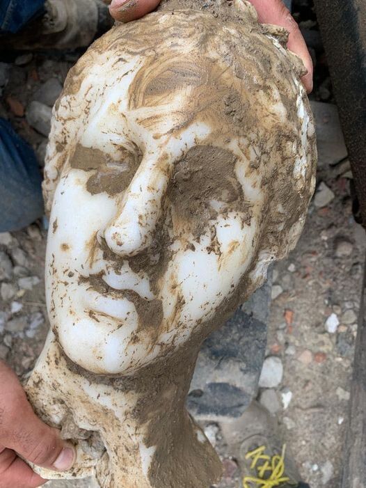 La foto postata da Gualtieri mostra la testa in marmo ancora sporca di terra e residui. "Gli archeologi e i restauratori sono adesso impegnati nella pulitura e nello studio del reperto", aggiunge il primo cittadino.