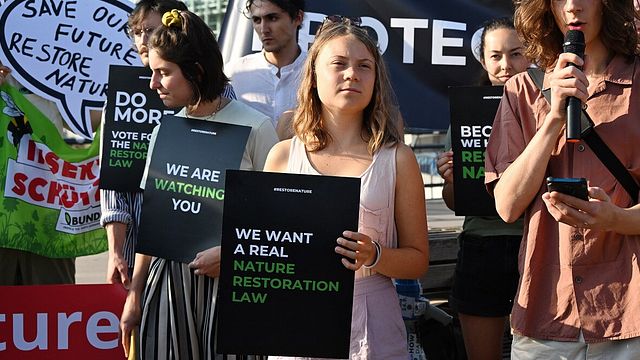 "Fino a oggi i politici hanno dimostrato di aver sempre tradito la nostra fiducia. Hanno avuto molte opportunità di dare valore alle loro azioni ma hanno fallito tutte le volte, oggi speriamo che dimostrino il contrario". Così Greta Thunberg, direttamente dal presidio in sostegno alla norma europea sul ripristino della natura organizzato dal gruppo dei Socialisti, dei Verdi e delle Sinistre davanti al Parlamento europeo. "Chiedo agli eurodeputati di non bocciare questa legge e anzi di votare per un testo il più forte possibile", ha sottolineato la svedese a Strasburgo.