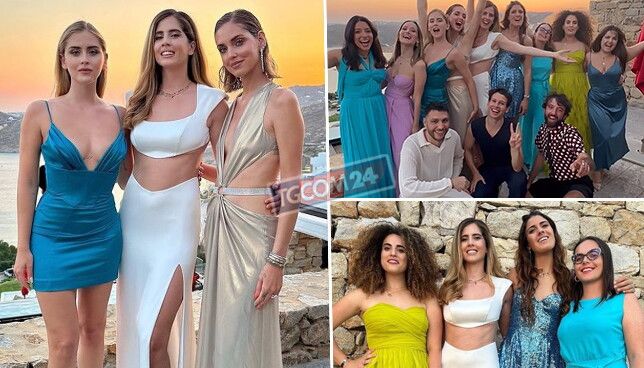 Chiara Ferragni vola da Wimbeldon a Mykonos per partecipare all’addio al nubilato della sorella Francesca Ferragni, che si sposerà il 9 settembre nel Castello di Rivalta con il compagno Riccardo Nicoletti. Al bachelorette, brandizzato e di super lusso, hanno partecipato le amiche di Francesca in un clima di festa scatenata e di outfit eleganti. La promessa sposa ha indossato un lungo abito a due pezzi con uno spacco vertiginosa e la schiena nuda.