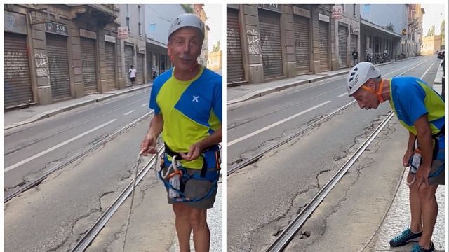 E dopo le battute comiche l'appello accorato al Comune di Milano: "Fate qualcosa, se no dentro la buca ci finisce anche il tram".