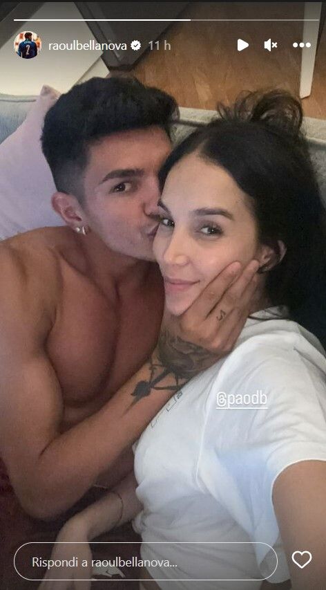 Paola Di Benedetto e Raoul Bellanova sono abbracciati sul divano, lui senza maglietta e con i pettorali in mostra, lei in tshirt bianca e senza make-up. Il calciatore afferra il volto della speaker in un gesto di grande intimità mentre le bacia una guancia. Entrambi guardano l'obiettivo con occhi che luccicano. Non aggiungono una parola, ma basta l'immagine del loro sguardo sognante per raccontare dell'amore sbocciato. Del flirt si era già parlato e la voce di una storia girava sul web, ora finalmente sono usciti allo scoperto.
