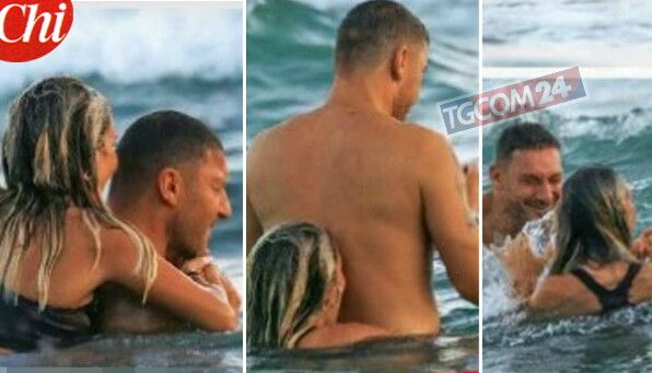 Francesco Totti e Noemi Bocchi sono stati immortalati dai paparazzi del settimanale Chi durante uno dei tanti pomeriggi d'amore trascorsi al mare a Sabaudia. Giocano a calcio sulla spiaggia, poi si gettano tra le onde vestiti e si lasciano travolgere dalla passione. Coccole, scherzi, baci... tanti gesti che testimoniano un rapporto solido e felice.