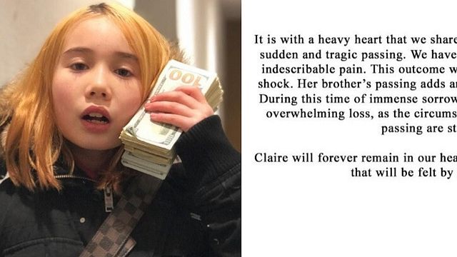 Nel dare via Instagram l'annuncio della "morte improvvisa" di Claire Hope, in arte Lil Tay, la famiglia afferma che non sono note le cause del decesso della rapper e del fratello. Per questo chiede "gentilmente privacy, poiché le circostanze che circondano Claire e la morte di suo fratello sono ancora oggetto di indagine".