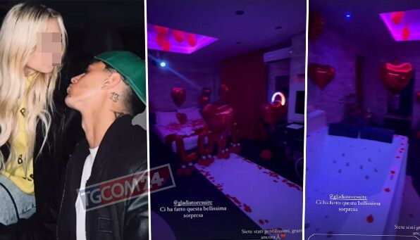 Chanel Totti riprende il suo ingresso nella suite con Cristian Babalus: la porta chiusa, la sua mano che afferra la maniglia e la sorpresa che trovano all'interno. La camera è allestita nel modo più romantico possibile, con petali di rose rosse che tracciano un percorso e poi sparpagliati sul letto, palloncini a forma di cuore, luci soffuse... c'è anche una vasca idromassaggio in cui rilassarsi, e due calici sul bordo che aspettano solo di essere riempiti.