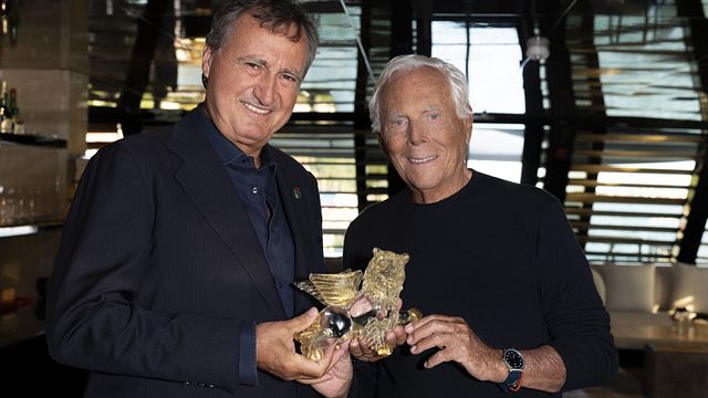 Giorgio Armani ha ricevuto il Leone d’oro di vetro di Murano dal sindaco di Venezia Luigi Brugnaro. "È per me motivo di gioia e di emozione – ha commentato lo stilista –, un riconoscimento importante al mio lavoro, che sono felice arrivi proprio nell’anno dell’80esimo Festival e in occasione di “One Night Only Venezia”, evento che ho deciso di organizzare come omaggio alla città, a cui sono fortemente legato".