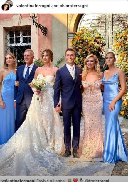 Francesca Ferragni sposa Riccardo Nicoletti, suo storico fidanzato e padre del suo bimbo Edoardo, nato a giugno 2022. Chiara Ferragni e la sorella Valentina, insieme alle amiche della sposa Fiorella D’Amore e Simona Zanisi, sono le damigelle della cerimonia più attesa dell’anno che vede come location da sogno il Castello di Rivalta in Emilia Romagna, sulle rive del fiume Trebbia. La proposta di nozze era arrivata nel giorno del 33esimo compleanno di Francesca.