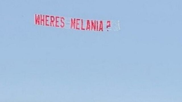 Intanto, il banner volante incriminato con la scritta "Where's Melania?", già da tempo hashtag fortunato sui social media, non è passato inosservato ed è stato immortalato in scatti e video diventati poi virali sui social network.