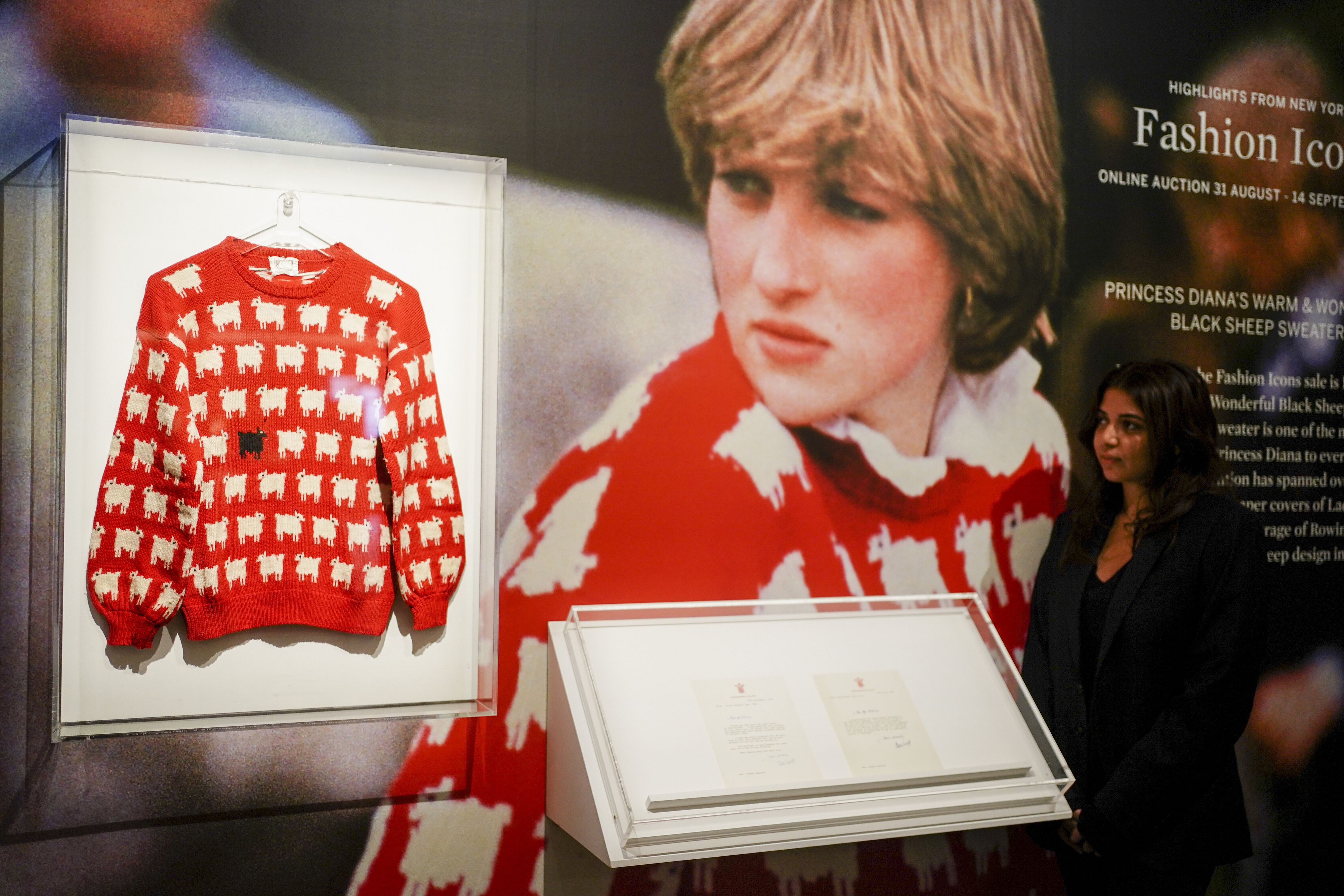 Il maglione era uno dei capi di abbigliamento più amati da Diana, realizzato nel 1979 dalle stiliste Muir e Osborne per la loro linea di maglieria. Come aveva spiegato Sotheby’s nel presentare il pezzo, poche settimane dopo quella prima uscita, le due stiliste ricevettero una lettera da Buckingham Palace in cui si chiedeva gentilmente di ripararlo o sostituirlo per via di un piccolo strappo su uno dei polsini. Le due stiliste hanno raccontato di aver ritrovato il cimelio a marzo rovistando in soffitta alla ricerca di qualche vecchio modello: "Abbiamo notato una piccola scatola. All'interno, nascosto accanto a un copriletto di cotone, c'era il maglione rosso con la pecora originale di Diana del 1981”. All'epoca le co-fondatrici del marchio Warm & Wonderful fecero avere a Lady D una nuova versione in cui la pecora nera sembra trovarsi in mezzo a una fila più alta di pecore bianche.