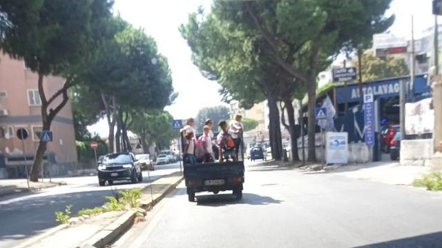 Un apecar con funzione di scuolabus. E' quanto denunciato da diversi cittadini di Napoli al deputato Francesco Emilio Borrelli che ha riportato i fatti sui social. Il mezzo si aggira nel quartiere Soccavo con bimbi trasportati in piedi nel cassone e senza protezione. "Da quanto raccontato - scrive Borrelli - pare che diversi bambini vengano fatti salire sul cassone del mezzo per essere accompagnati a scuola, il tutto senza la minima protezione o sicurezza, con il rischio che i giovanissimi studenti cadano dal mezzo rischiando gravi ferite o addirittura di morire".