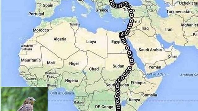 A sorprendere i ricercatori che hanno monitorato il viaggio della femmina di Falco pecchiaiolo occidentale dotata di localizzatore satellitare è stata la linea retta che ha preso verso nord. Ha però evitato il Sudan e le tempeste del Mediterraneo, deviando verso la sorgente del Nilo per poi seguire il fiume.