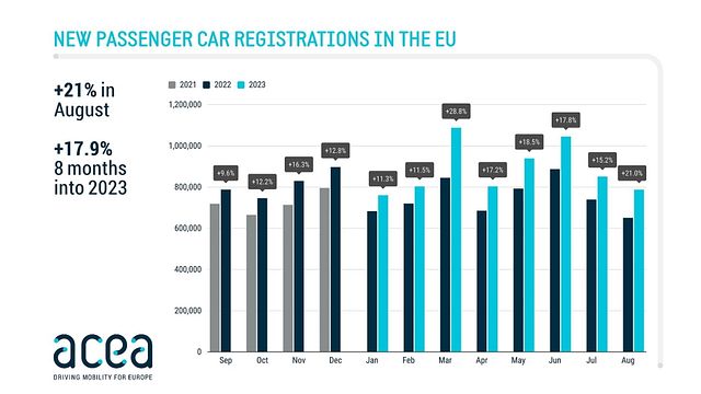 E fu così che il mercato europeo dell'auto segnò il suo il tredicesimo mese consecutivo di crescita. Infatti, anche nel passato mese di agosto, secondo i dati diffusi dall’Acea, le immatricolazioni nell'area Ue, Paesi Efta e Regno Unito sono aumentate del 20,7% rispetto allo stesso periodo del 2022, grazie all'immatricolazione di 904.509 unità.