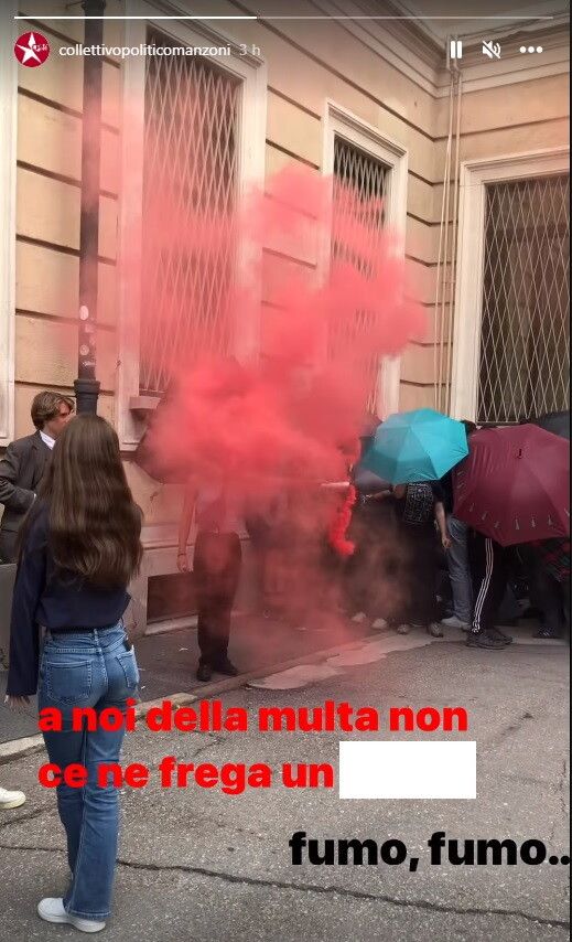 Così, nel corso di un'assemblea è stata decisa la protesta in risposta ai provvedimenti: un flash-mob all'interno del cortile della scuola con due fumogeni rossi, ombrelli colorati e musica. Nelle storie di Instagram del Collettivo Politico Manzoni è stato testimoniato il dissenso dei ragazzi.