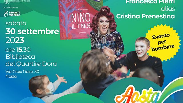 Ad Aosta è polemica per un evento dedicato ai bambini all'interno della Pride Week 2023. Il 30 settembre, nella biblioteca del quartiere Dora di Aosta, Francesco Pierri, nei panni della drag queen Cristina Prenestina, leggerà il suo libro "Nino il T-rex" e guiderà bambini e bambine in un laboratorio creativo come già successo a Bari nel mese di maggio. Ma la Lega valdostana insorge, chiedendo conto all'assessore regionale dell'iniziativa.