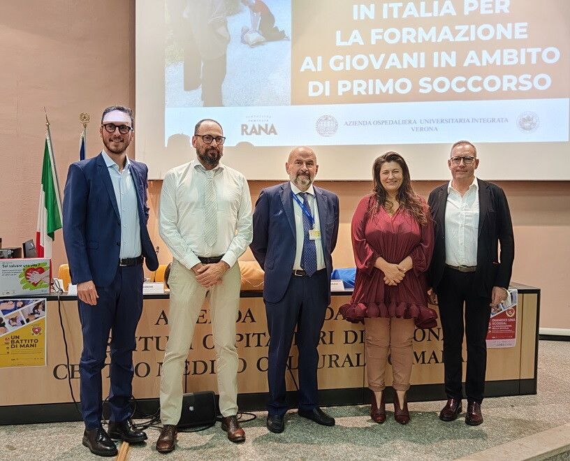 Con il nuovo anno scolastico, ripartono gli innovativi percorsi didattici ideati dall'Azienda ospedaliera universitaria integrata (Aoui) di Verona, per portare nelle scuole l'insegnamento delle manovre di rianimazione cardiopolmonare e certificare gli studenti all’uso del defibrillatore. Grazie al contributo di Fondazione Famiglia Rana sarà possibile quest'anno estendere la formazione a oltre 700 studenti di Verona. Dopo il lavoro degli ultimi due anni, il territorio veronese sarà così il primo in Italia per capillarità nell’educazione del primo soccorso a scuola. Grazie al sostegno di Gian Luca Rana e Fondazione Famiglia Rana, raddoppiano così gli studenti che partecipano ai progetti didattici "Diamoci una scossa" e "Un battito di mani", realizzati dall'Aoui di Verona, in collaborazione con l'Università degli Studi di Verona.